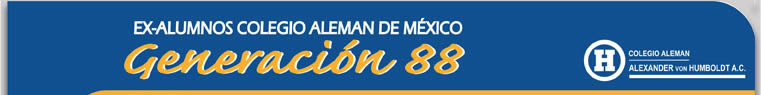 Bienvenidos al Sitio Web de la Generación ´88 del Colegio Alemán de México. El objetivo inicial de este sitio es poder comunicarnos, contactarnos, mantener nuestra información actualizada, etc. por un medio ágil y accesible para todos. Poco a poco podremos ir utilizando este medio para más objetivos.